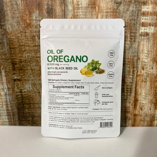 Organic Oil of Oregano 180 Softgels 2 in 1 Black Seed Oil Herbal Supplement US
