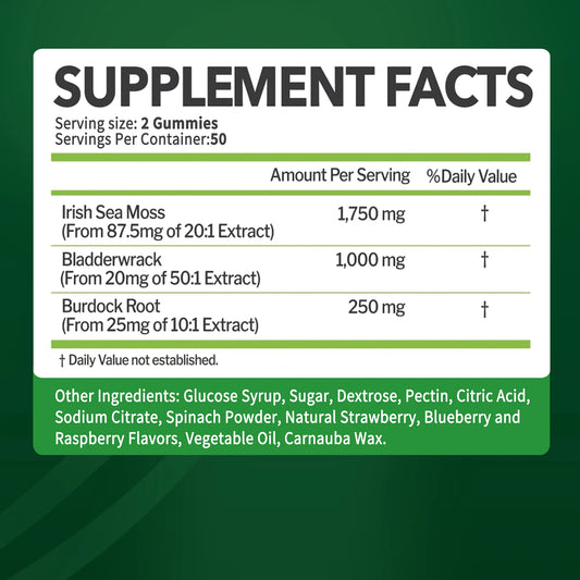 SEAMOSS Gummies - with Bladderwrack, Burdock Root - Immune Health, Healthier Skin & Hair, Detox - 100 Gummies