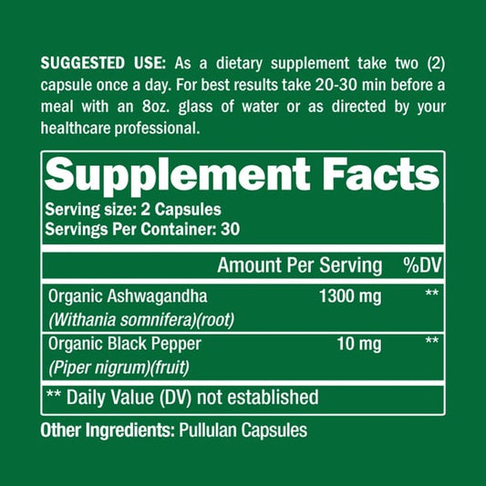 Organic Ashwagandha 60 Capsules