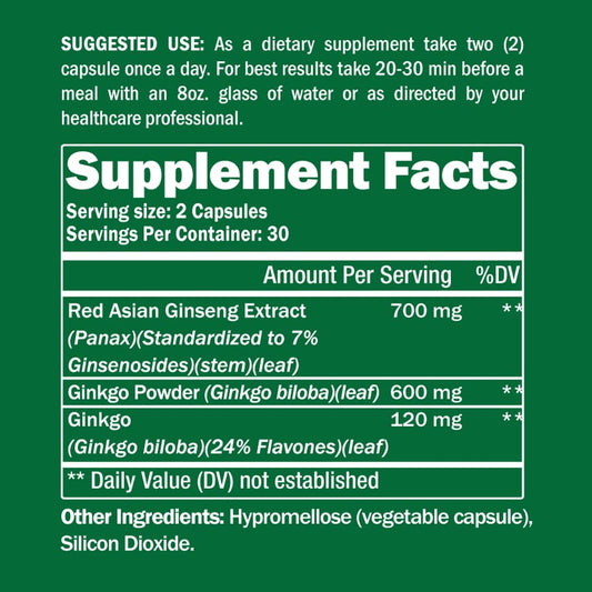 Ginkgo Biloba + Ginseng 60 Capsules