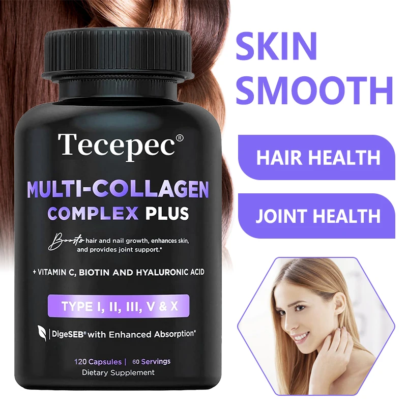 Suplemento multicolágeno Tecepec - 120 cápsulas - Para la salud de la piel, el cabello, las uñas, los huesos, los tendones, las articulaciones y el intestino
