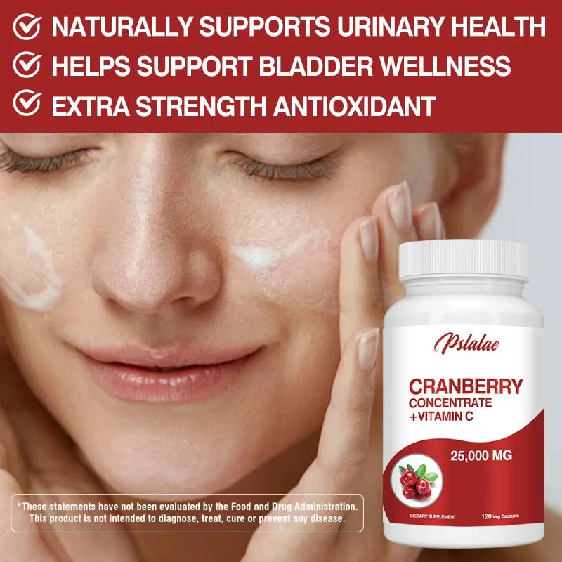 Cranberries contain vitamins C and E. Contains 500 mg of potent premium cranberry concentrate per serving at a 50:1 concentration (equivalent to 25,000 mg). It also contains 45 mg of vitamin C and 5 mg of vitamin E.