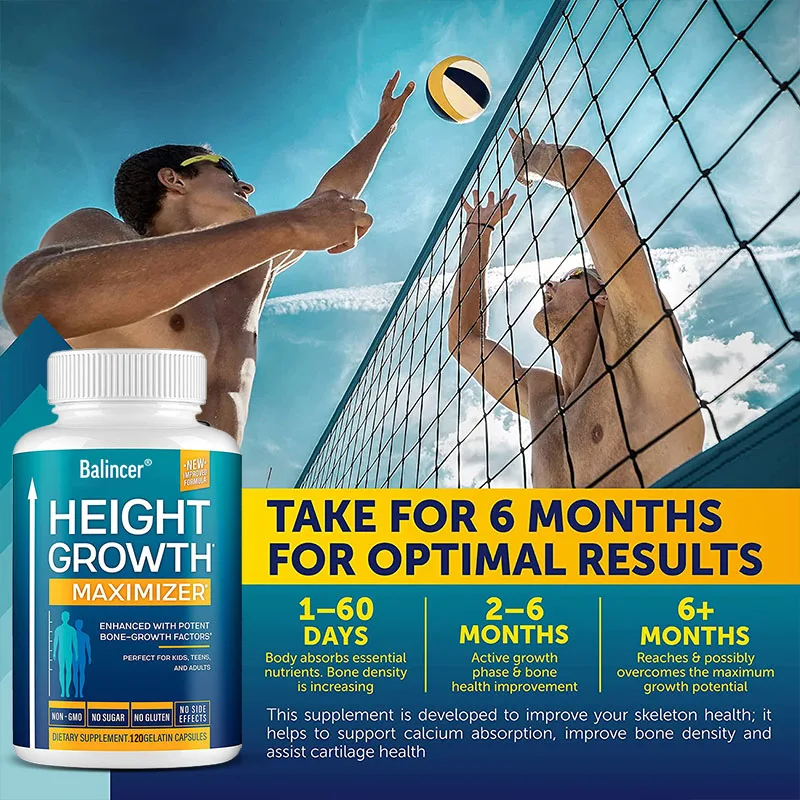 Height Growth Maximizer - Natural Peak Height - Bone Strength Growth Pills with Calcium - No Somatropin, 120 Capsules