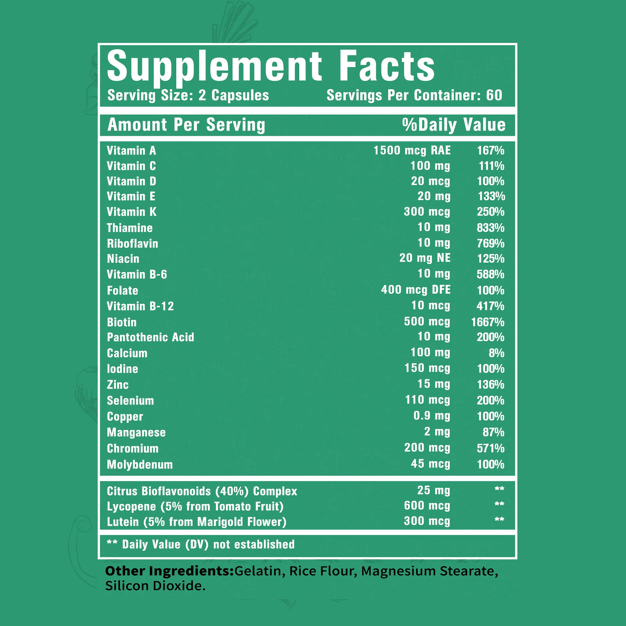 Daily Dose of Antioxidants: Helps reduce damage caused by free radicals while supporting overall health with vitamins A, C, and E, as well as zinc, copper, and selenium.