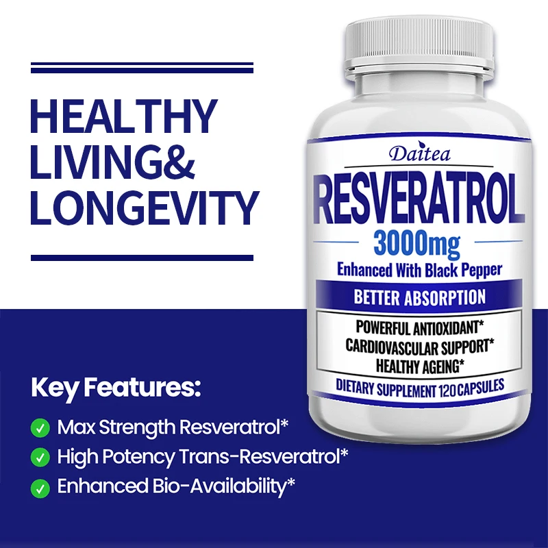 ★ Super Antioxidant Formula: Resveratrol is a compound found in grapes - it also contains high concentrations of trans-resveratrol, the active form of this compound that is most useful to the body. Black pepper extract increases and helps absorb resveratrol faster.