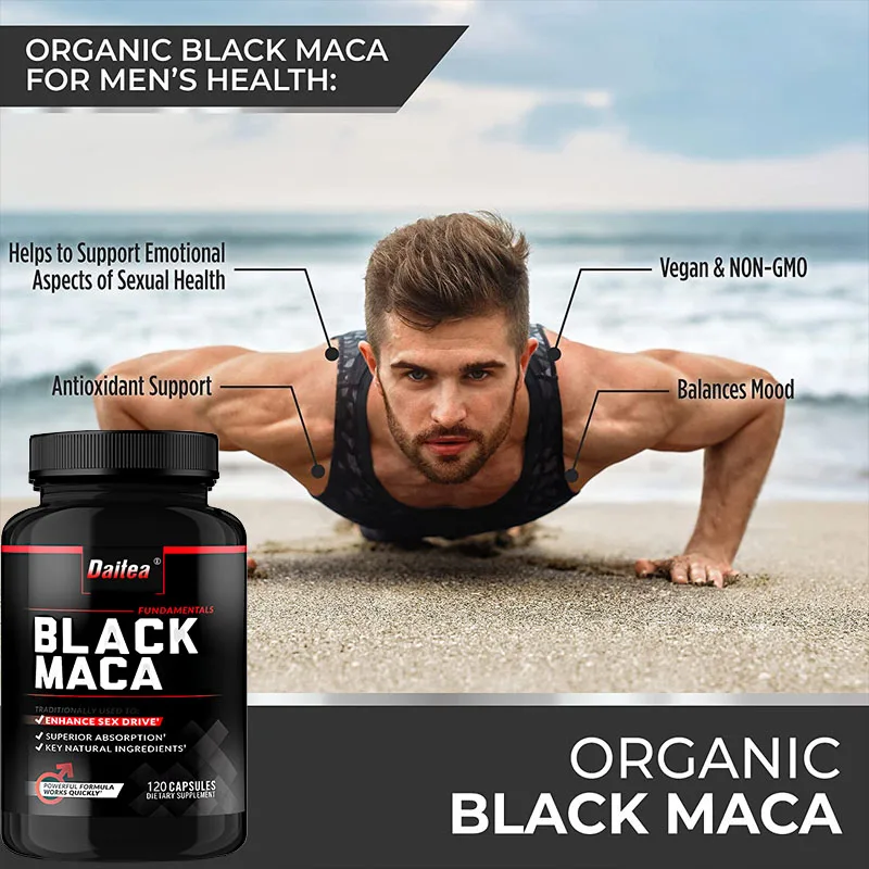 Organic Black Maca Capsules, Helps with Energy, Endurance, Mood Health, Antioxidant Support, Vegan, Non-GMO