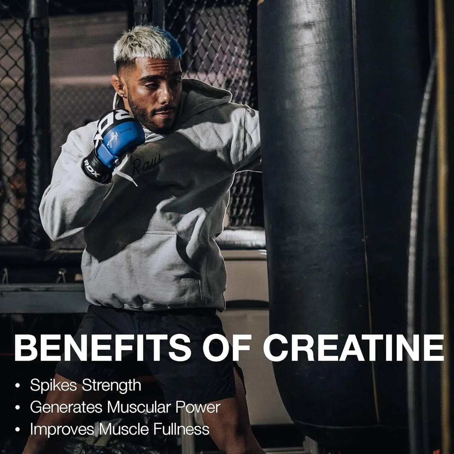 ["Creatine monohydrate was one of the first sports nutrition supplements to ever hit the market decades ago, there’s a reason it has withstood the tests of time. This strength builder has been proven time and time again to enhance power output. Creatine is a staple in the world of weight training that lays the foundation for athletes to excel.\nCreatine powder is a naturally occurring compound in the body that plays a critical role in the production of ATP, the primary source of energy for your muscles. Raw Nutrition's Creatine delivers pure, high-quality creatine monohydrate to help increase muscle energy, strength, and endurance, so you can push harder and train longer.\nAbout 95% of your body’s creatine is stored in muscles in the form of phosphocreatine. When you supplement with creatine monohydrate daily, you increase these stores. This results in your body producing more ATP (Adenosine 5'-triphosphate). ATP is often called the body’s energy currency. Having more ATP readily available during training empowers your muscle cells to handle a heavier load.\nNo Fillers. No Artificial ingredients. No GMOS.\nBuilt for Champions: Founded and trusted by 6X Olympia Champion Chris Bumstead"]