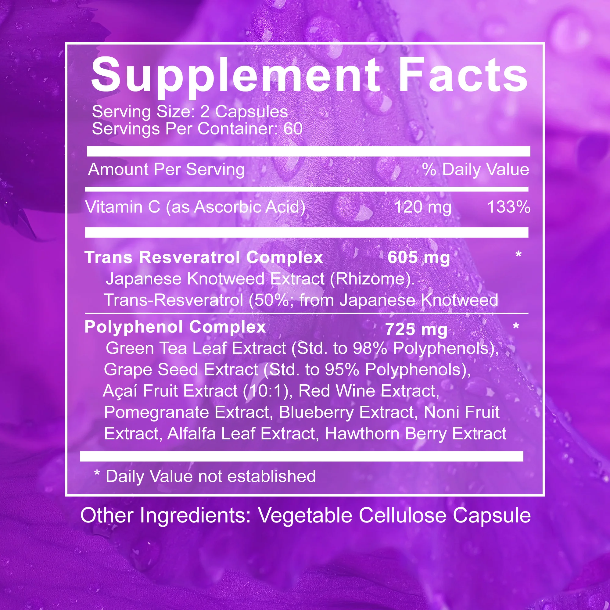Ingredients: Trans-Resveratrol,Green Tea Leaf Extract,Grape Seed Extract