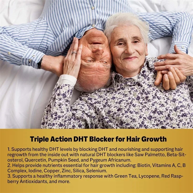 DHT Blocker supports hair growth and blocks DHT with 41 natural herbs and vitamins including 5000mcg Biotin, Beta-Sitosterol, Saw Palmetto.