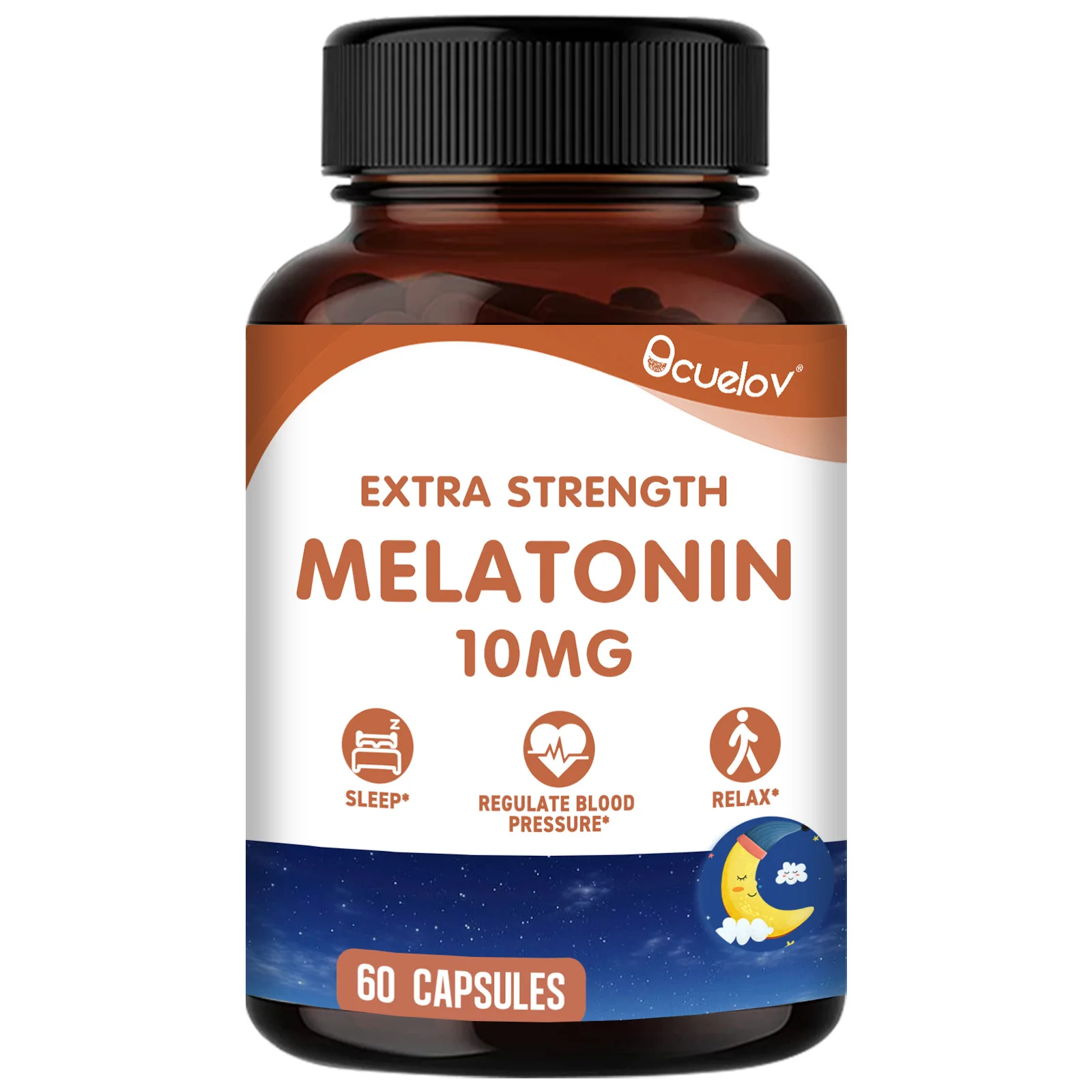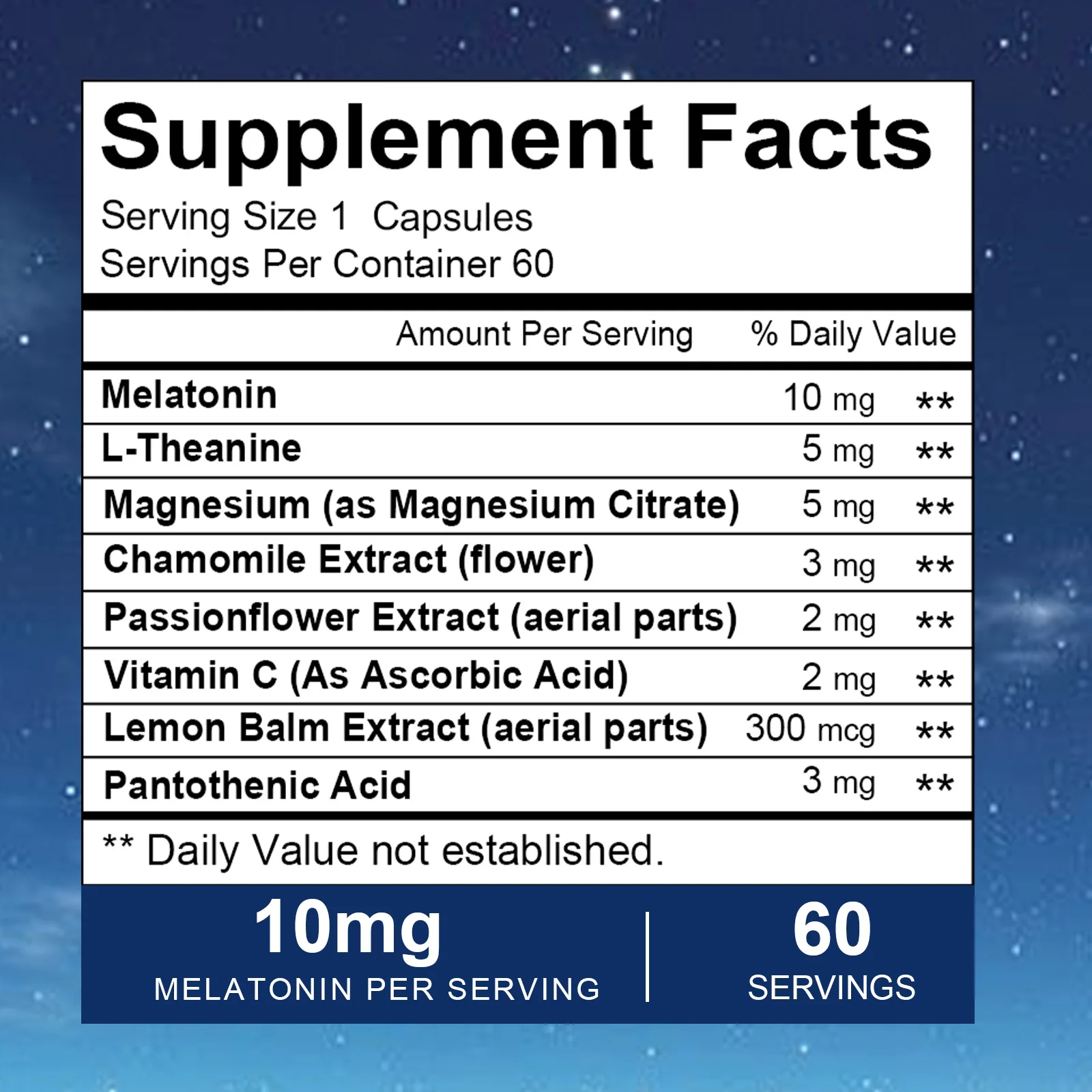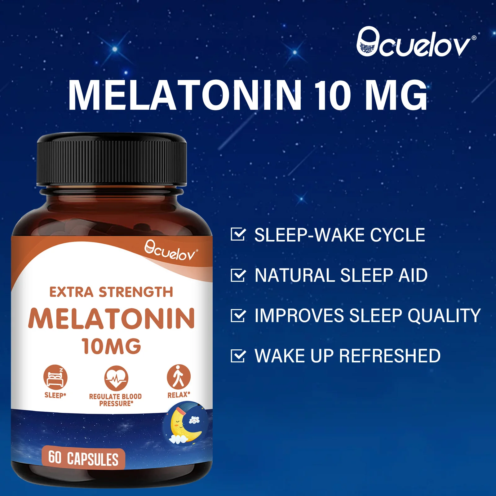 Sleep Melatonin 10 Mg Capsules, Adult Nighttime Sleep Supplement, Helps You Fall Asleep Faster and Deeper, 60 Vegan Capsules